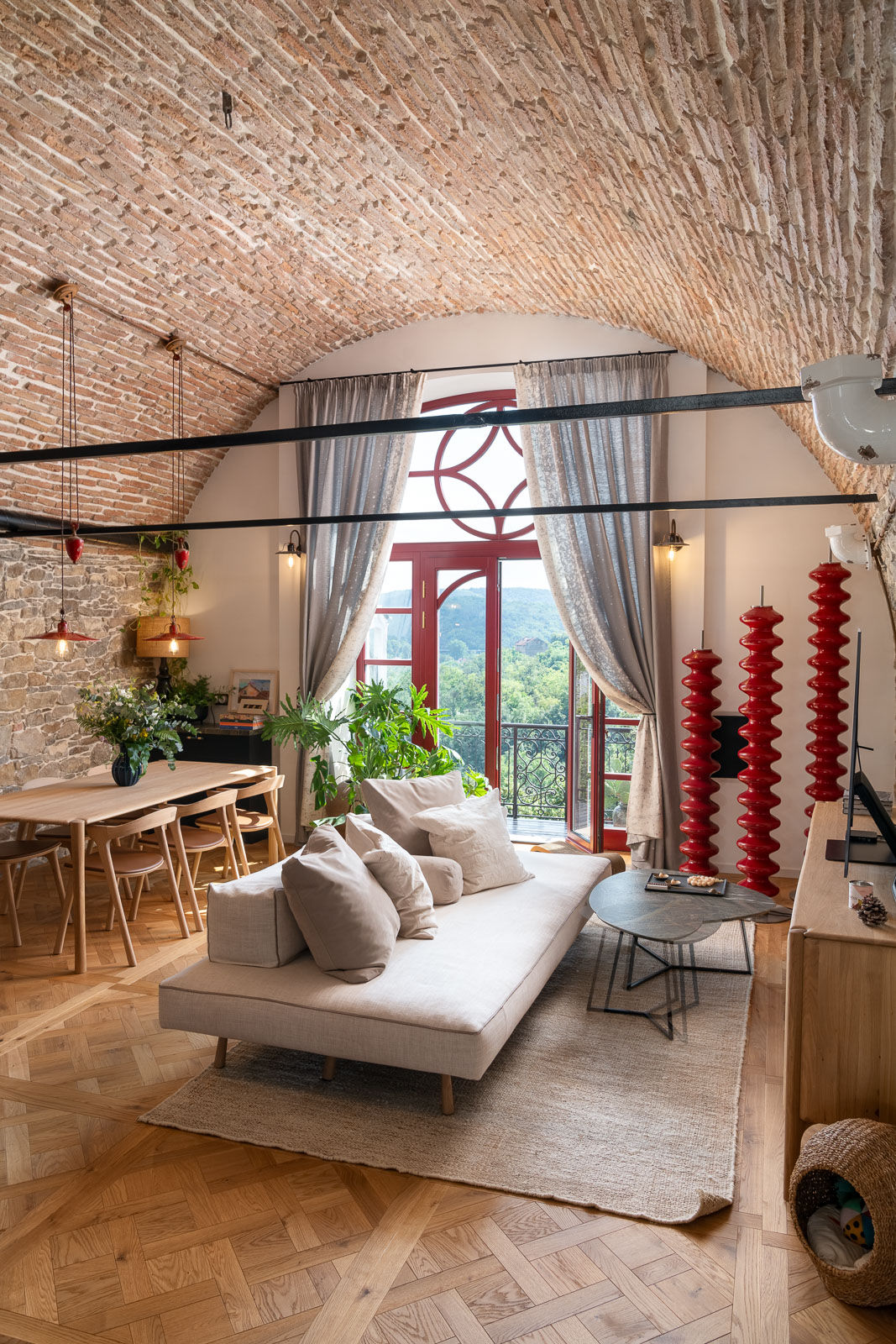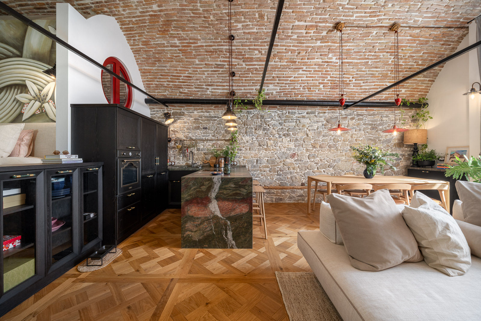 „Тоскана?! Не, Търново!“ - това е най-подходящото заглавие за този проект, в който проектирахме цялостно дизайнерско обновление на етаж от почти 200 годишна къща в стария квартал Варуша във Велико Търново. На раздвижена обща площ от 60 кв.м., в хармония с архитектурата и с почит към работата на Колю Фичето и неговата емблематична сграда в близост - великолепния храм „Св. Св. Константин и Елена“ от който взаимствахме детайли в дограмата - придадохме на помещението модерен храктер в артистичния ни стил, добавихме персонален художнически етюд от съвременен търновски графити-артист и постигнахме един наистина неповторим интериор!